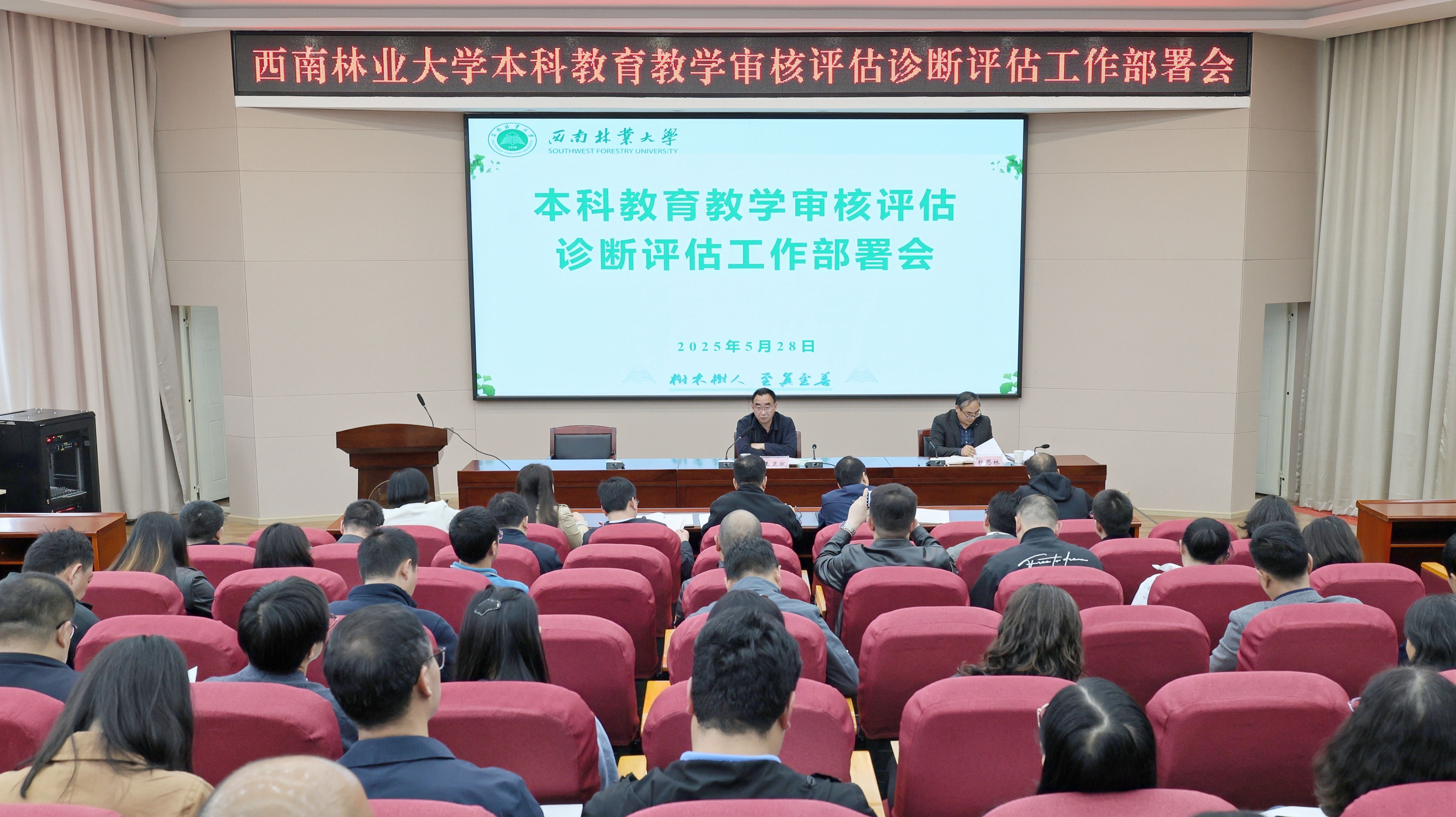 5月28日,学校召开本科教育教学审核评估诊断评估工作部署会,校长王卫斌出席会议并作动员讲话,副校长杨思林主持会议。各学院主要负责人、各专项工作组人员及评估专班全体人员参会。
