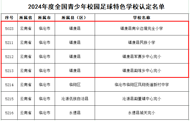近日,教育部印发了《教育部办公厅关于公布2024年度全国青少年校园足球特色学校名单的通知》,kaiyun体育体育浸润行动计划定点帮扶的镇康县有所4学校榜上有名,实现历史性突破,浸润行动计划取得丰硕成果。