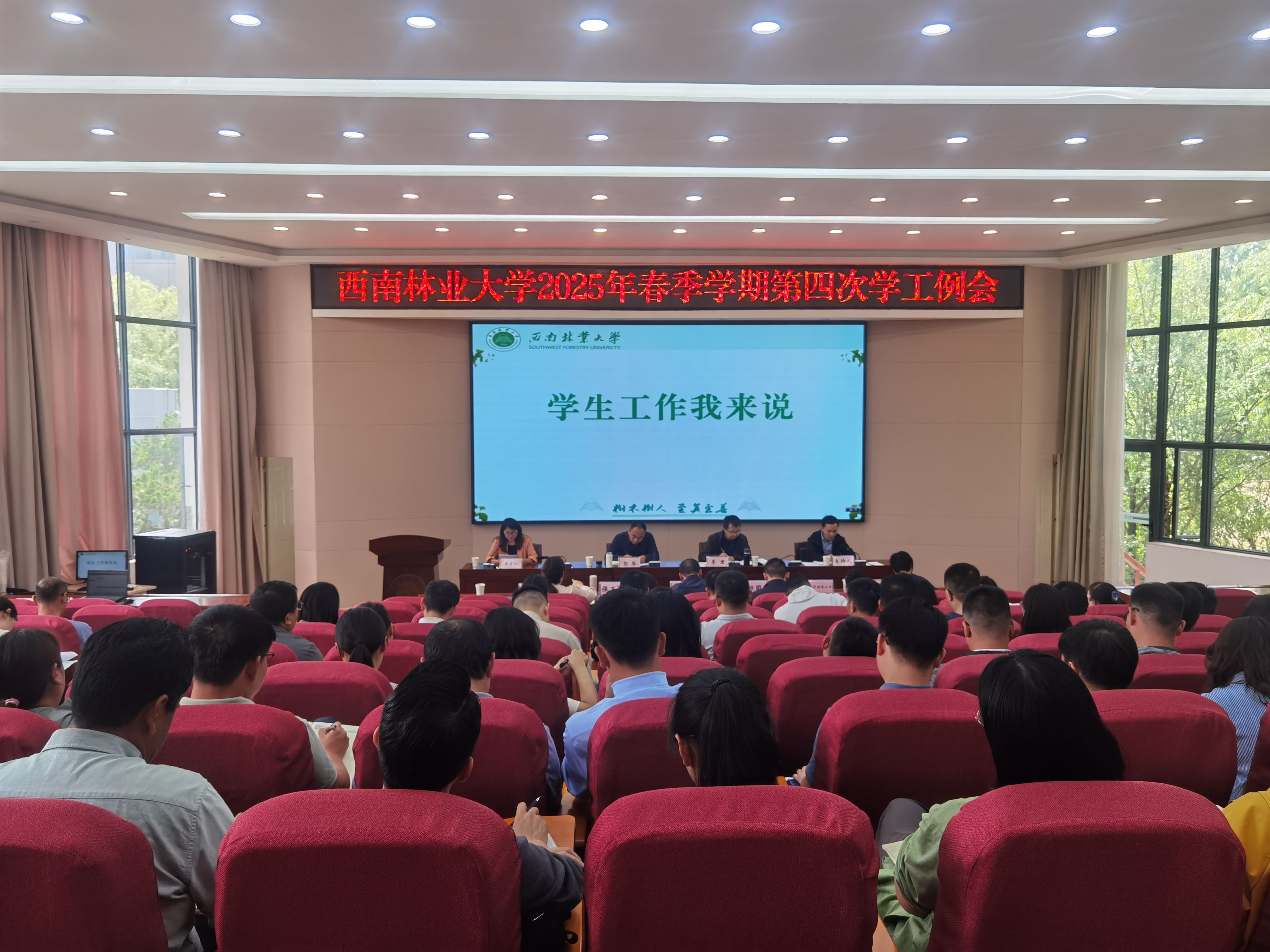 6月23日,学校召开2025年春季学期第四次学工例会。校党委副书记李君、副校长郭华出席会议并讲话。学生处(学生工作部、武装部)主要负责人主持会议。
