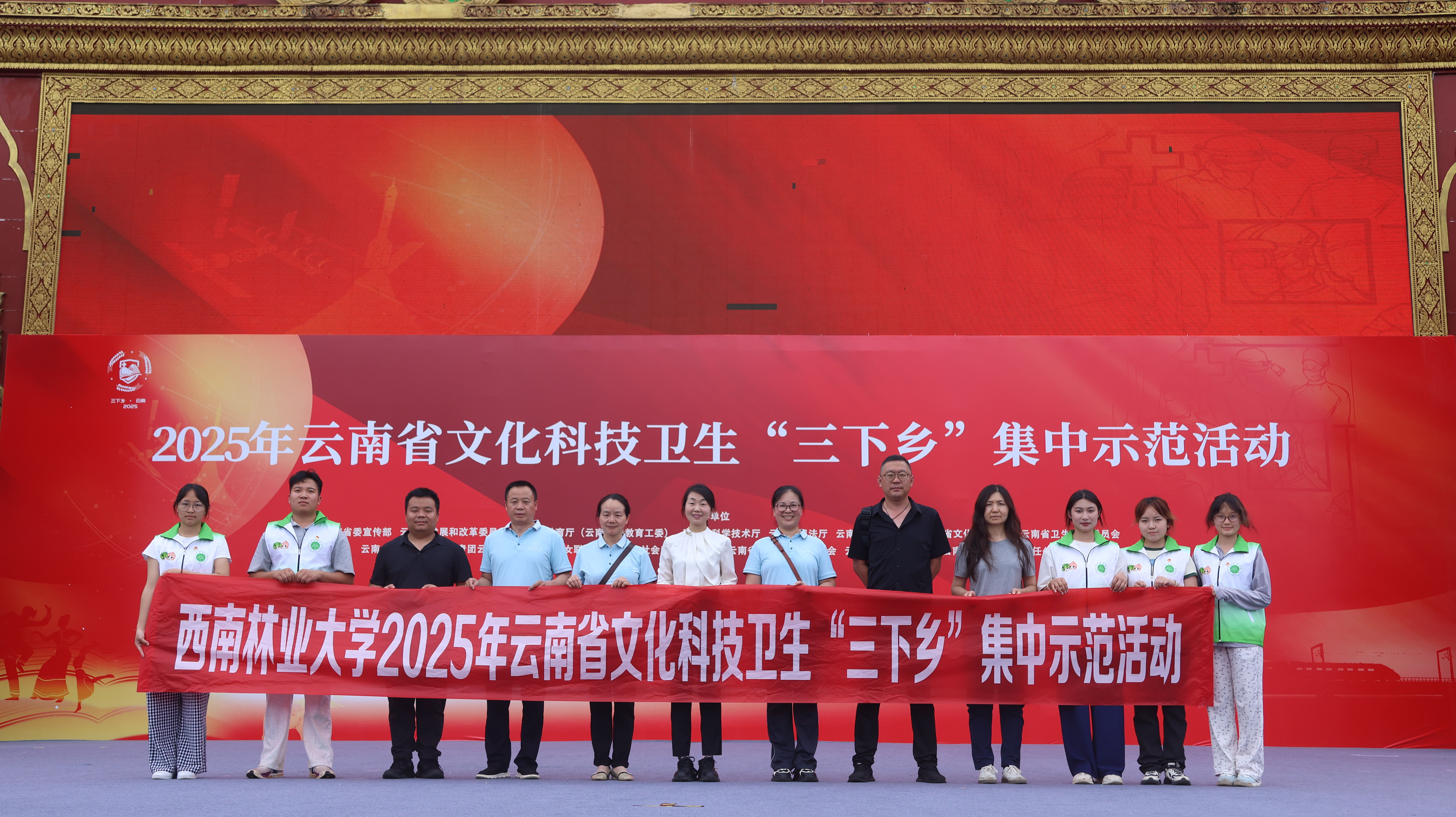 6月27日,2025年云南省文化科技卫生“三下乡”集中示范活动在勐腊县举行。学校宣传部、科学技术处、团委和生物与食品工程学院联合组建师生边境生态安全志愿服务团参与集中示范和小分队巡回服务。