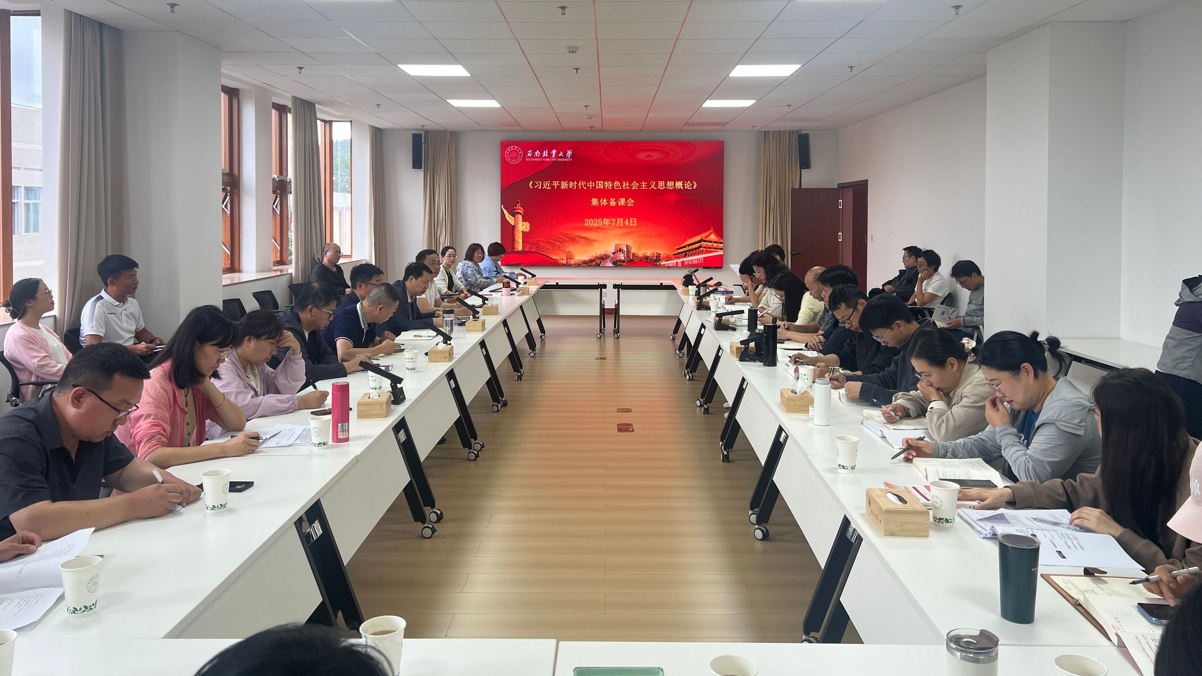 随后,教研室主任赵洁主持了《习近平新时代中国特色社会主义思想概论》课程集体备课会。张庶、和茂竹、杨林刚、孙迎梅四位老师分别汇报教学经验,提出教学中的困惑,教研室团队就此展开了深入讨论与交流。在自由交流环节,各学院代表踊跃发言,分享了不同学科视角下的集体备课心得,同时也提出了备课过程中遇到的问题与思考。赵洁在总结中肯定了本次集体备课的成效,认为教师准备充分,备课质量较高。她表示,教研室将继续加强集体备课,提升教师教学能力。