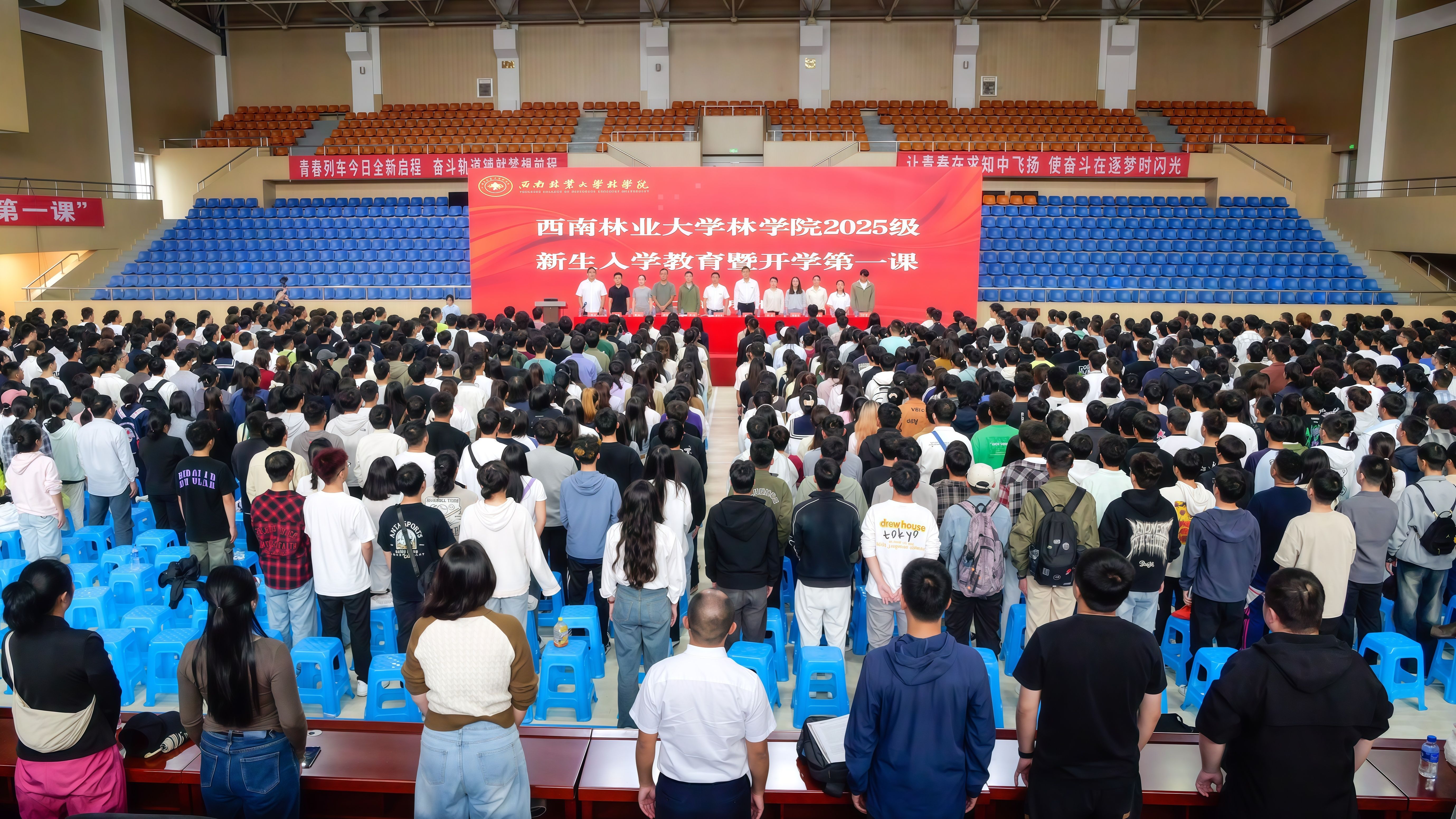 8月24日,林学院(亚太林学院)在体育馆举行2025级新生入学教育暨开学第一课。林学院党政领导班子、新生班主任、辅导员、学生管理相关教师以及2025级全体新生共一千余人参加大会。大会由党委副书记李法营主持。