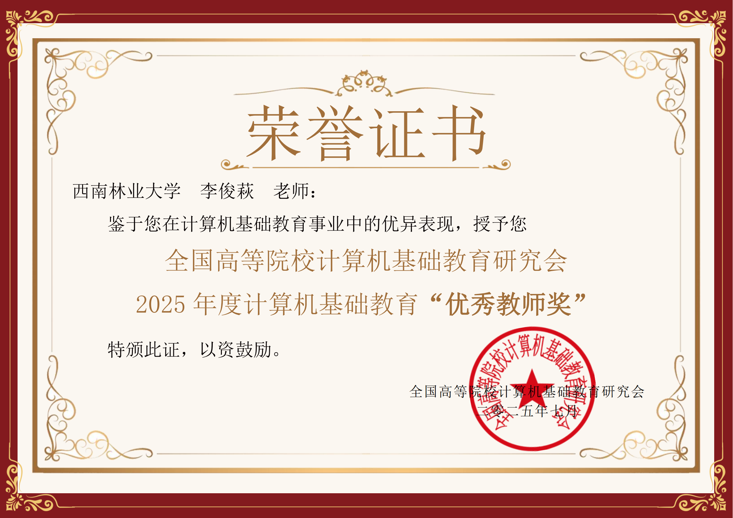 7月16日至18日,以“数智融合,创新计算机教育”为主题的全国高等院校计算机基础教育研究会学术年会在西宁举行,kaiyun体育大数据与智能工程学院李俊萩老师获得计算机基础教育优秀教师奖。