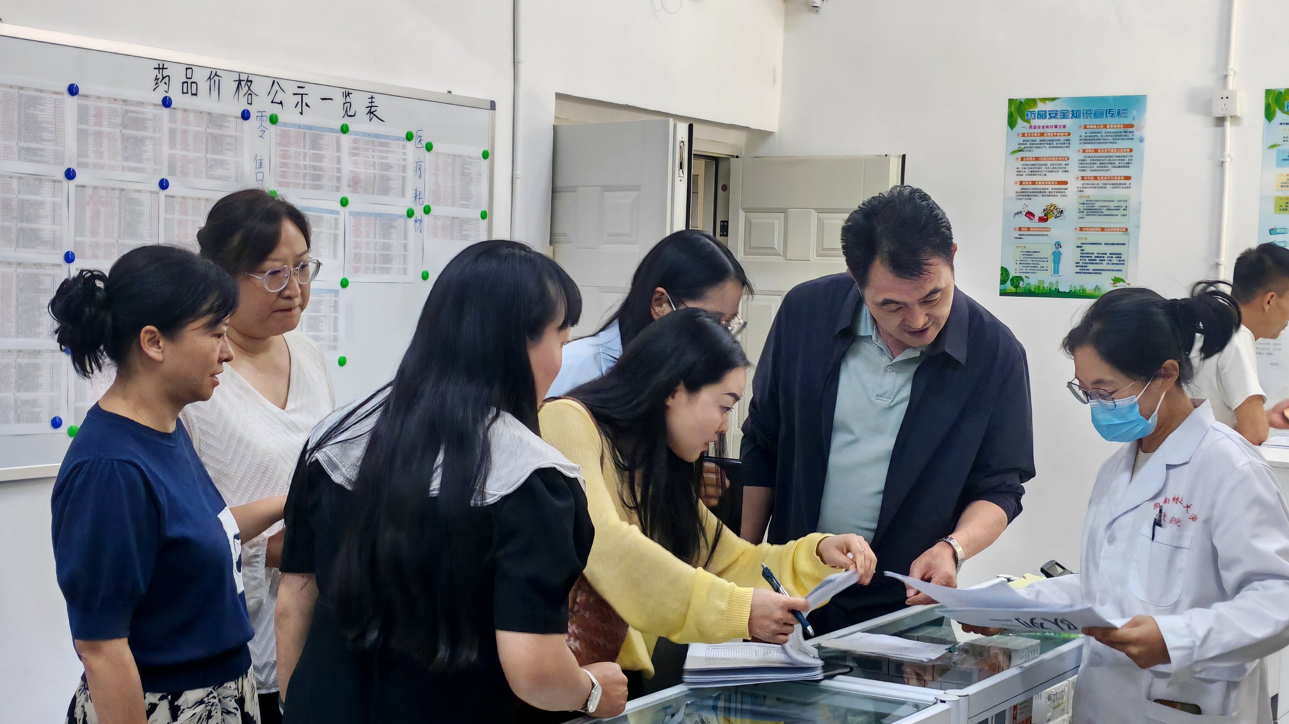 检查组实地察看校医院接诊、诊断、处方开具、取药及医保结算等服务环节运行情况,重点检查中医科、护理部等医疗服务项目的价格维护工作记录,调研校医院日常诊疗工作中面临的实际困难。