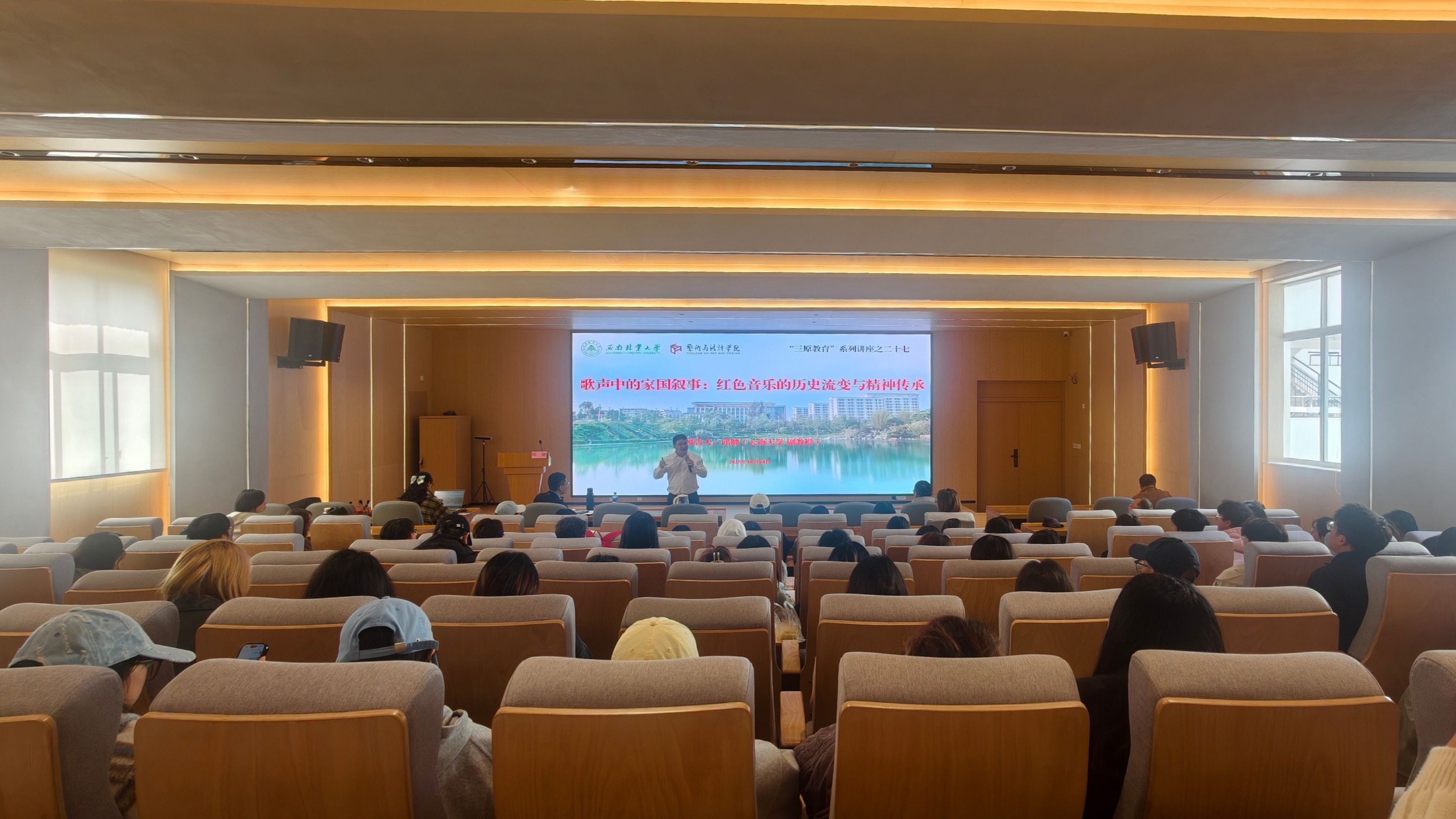 10月24日,艺术与设计学院党委邀请云南大学邱健副教授讲授题为《歌声中的家国叙事:红色音乐的历史流变与精神传承》的专题党课。党课由学院党委书记张德国主持。