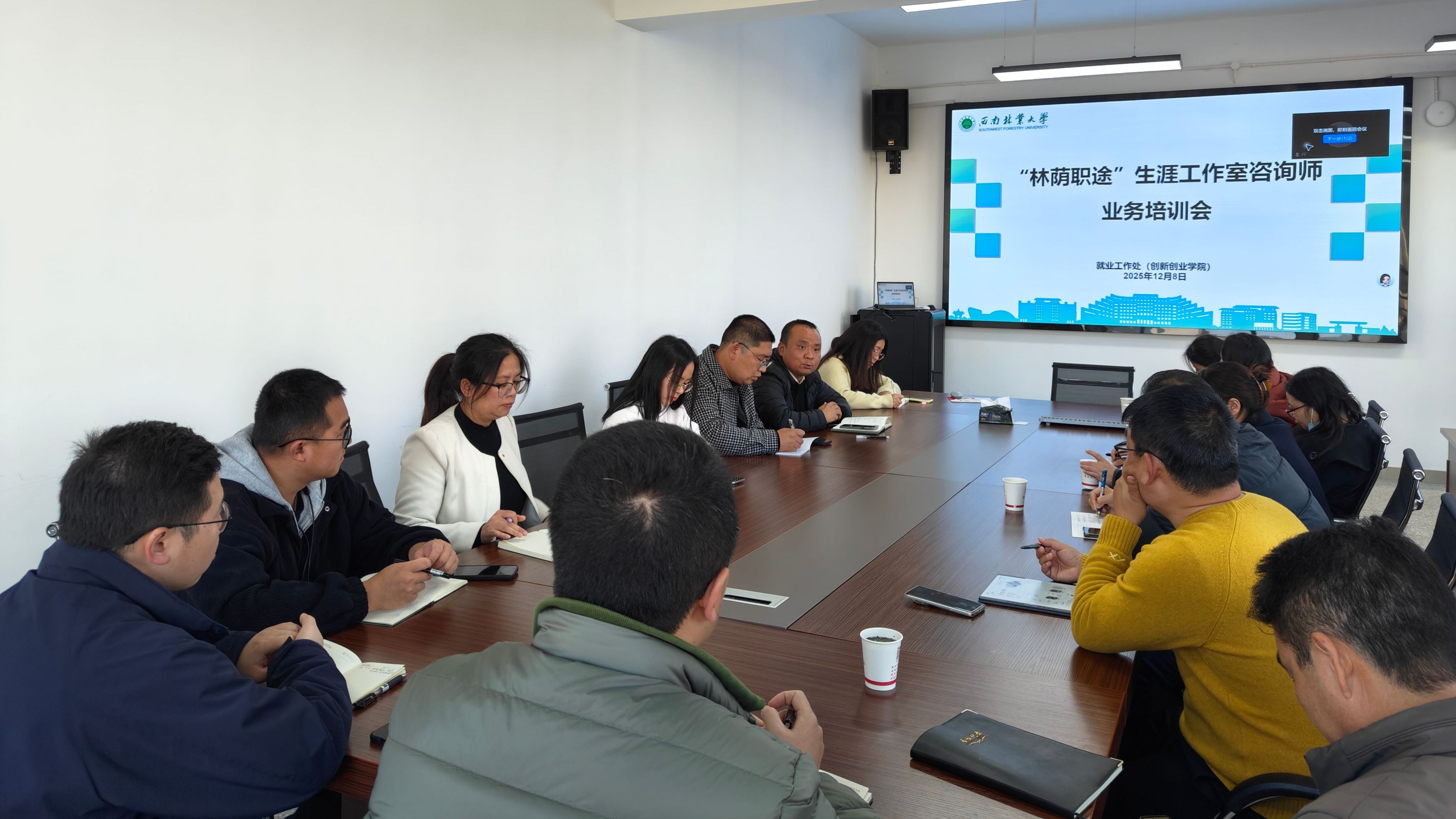 12月8日,就业工作处(创新创业学院)在致知楼501组织开展“林荫职途”生涯工作室咨询师队伍业务专题培训。