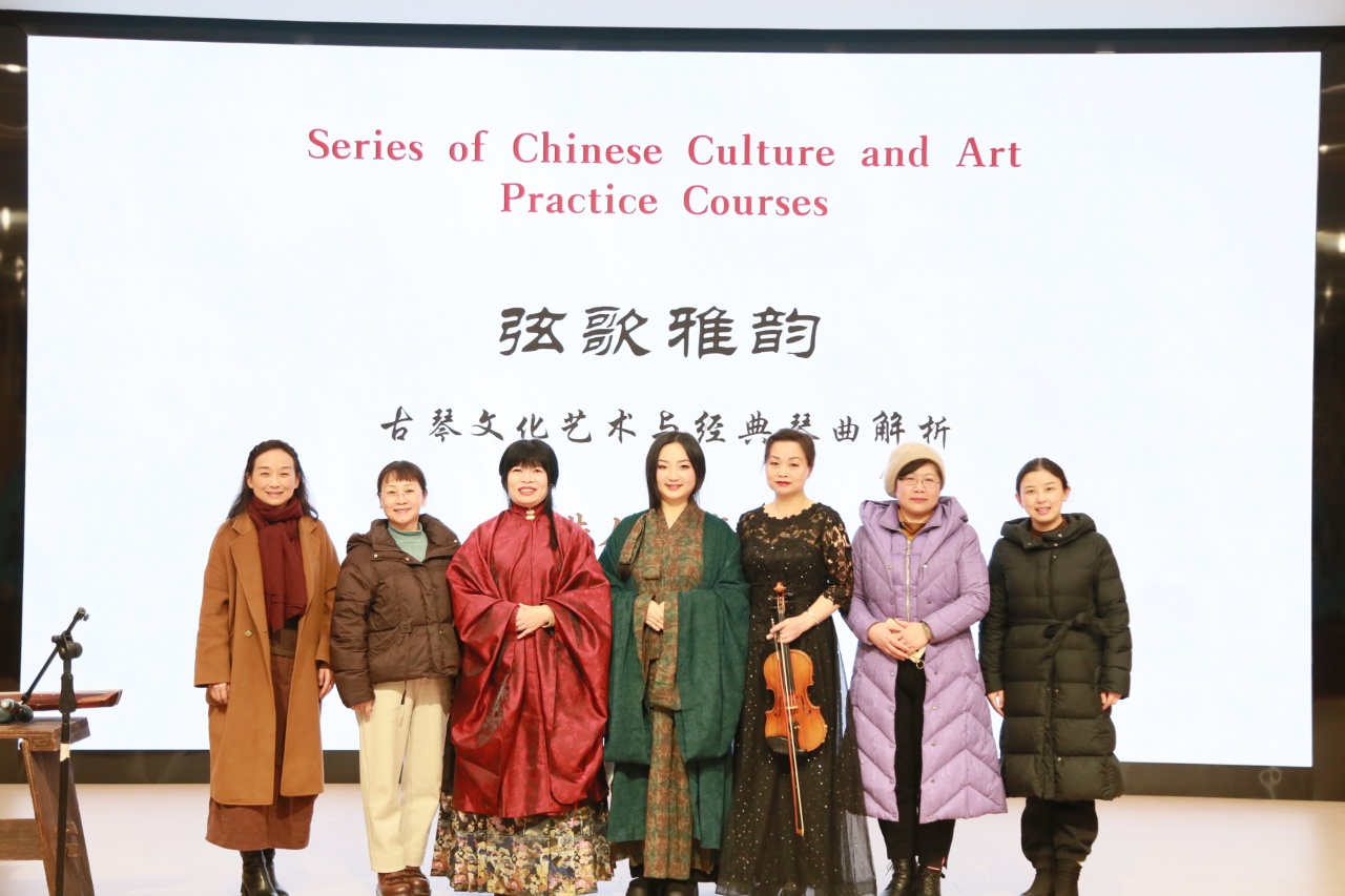 12月26日,外国语学院(国际学院)“弦歌雅韵,经典流芳——中华古琴文化艺术与经典琴曲解析与欣赏”活动在大学生活动中心温情启幕。学院党委书记姜丽红,副院长杨思薇,学校工会、妇联副主席李林谦,园林园艺学院副书记陈远书及其他部门老师、留学生及汉语国际教育学生参加活动。