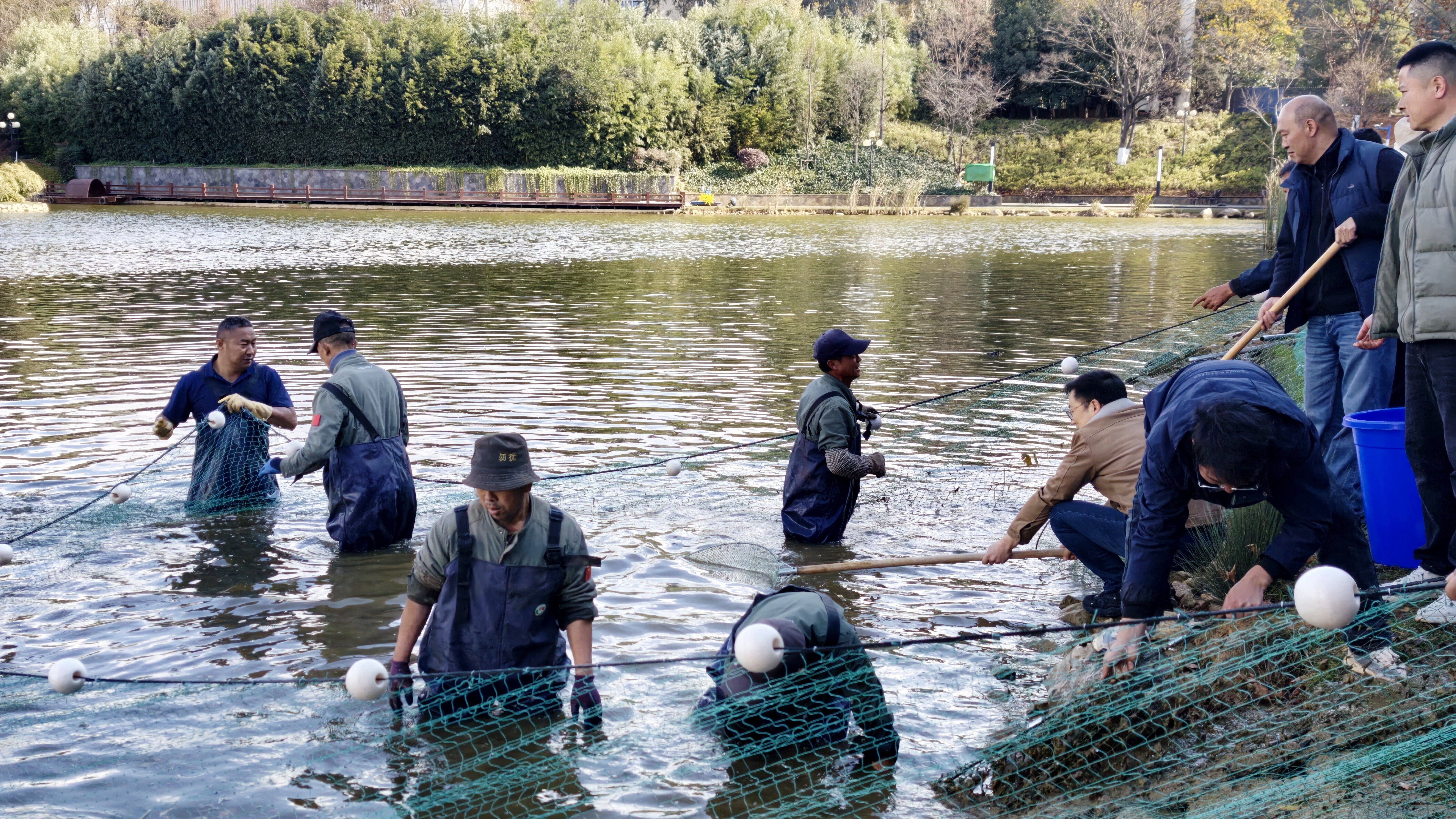 自今年初投放鱼苗以来,公司持续开展kaiyun体育湖常态化管护与水体治理,生态品质稳步提升,鱼类生长态势良好。本次捕捞严格执行操作规范,公司职工不畏严寒,协同作业,共捕获鲜鱼约800公斤。经各个食堂精心烹制后,向全校师生免费供应。