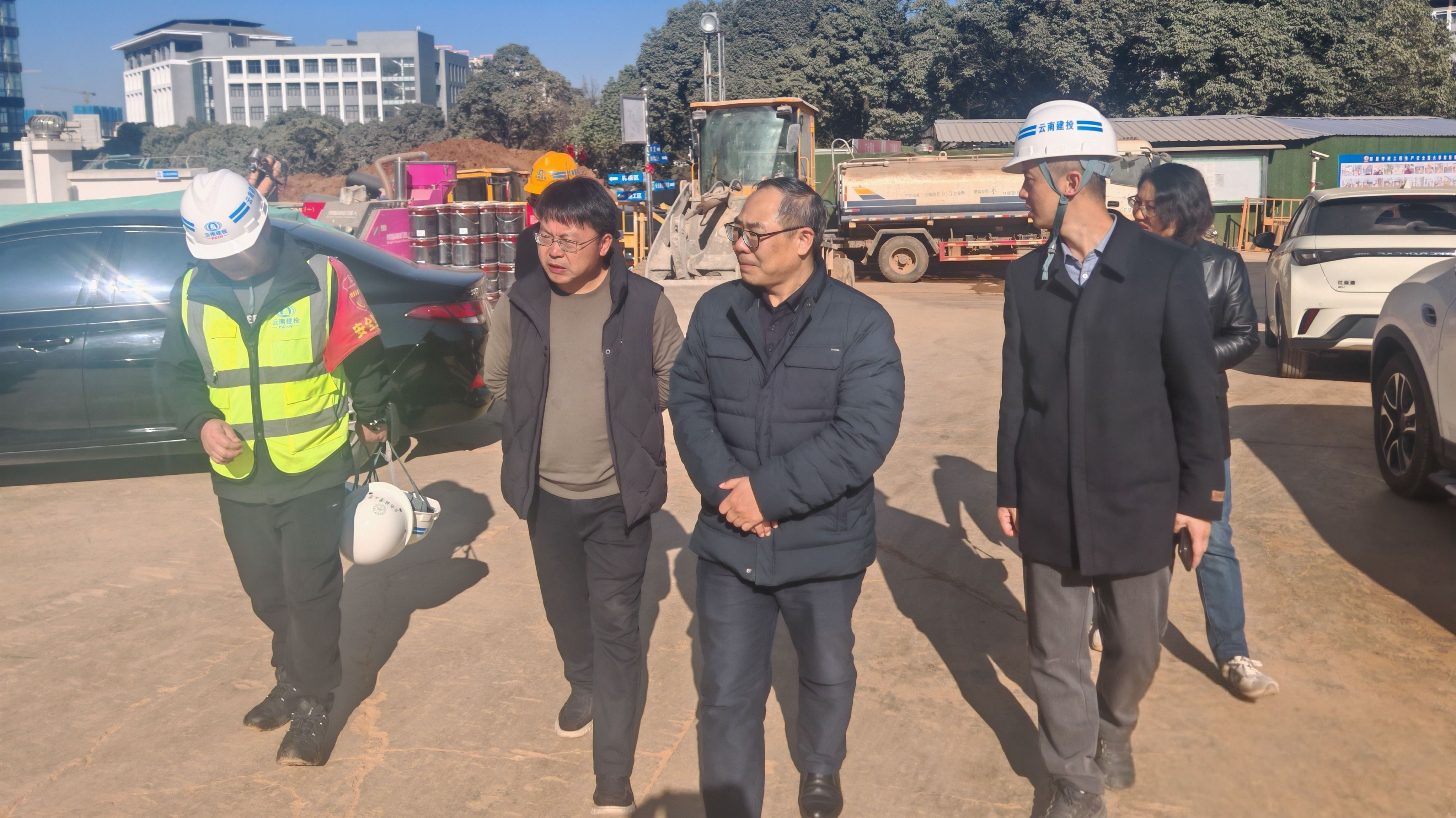 检查过程中,杨思林一行认真踏勘项目现场,听取项目负责人关于施工进度、质量管控、安全防护及假期值守等工作汇报,详细了解项目建设进展、安全生产管理及春节期间工作安排等情况,针对当前项目推进中的重点环节提出明确要求。