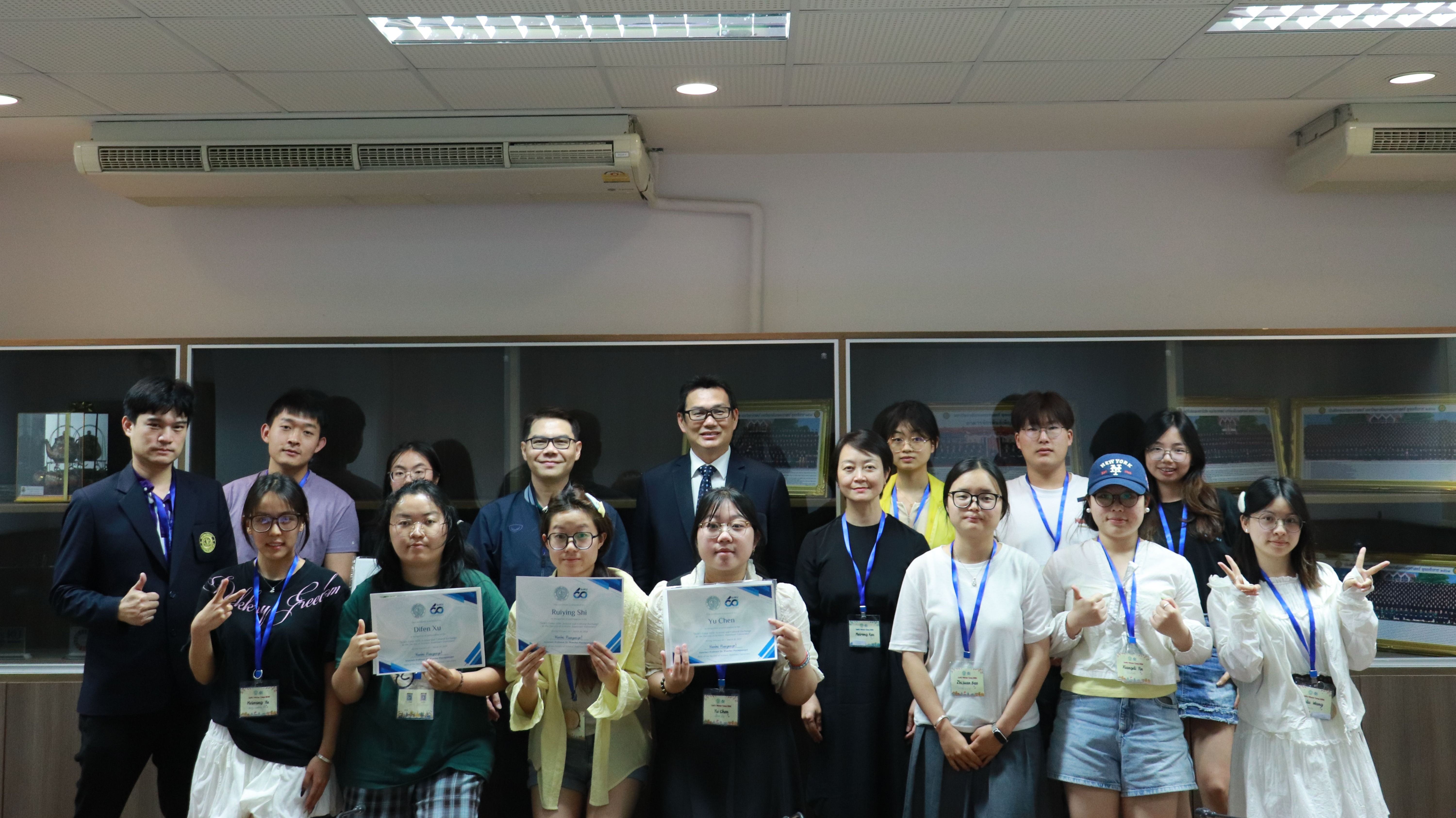 冬令营结束,泰国农业大学理学院院长Wanchai Pluempanupat为我院学生颁发结业证书,肯定了参与学生的表现。师生纷纷表示,参加本次交流活动,极大提升了专业素养、拓宽了国际视野、也深刻体会到中泰文化的多元与共通。