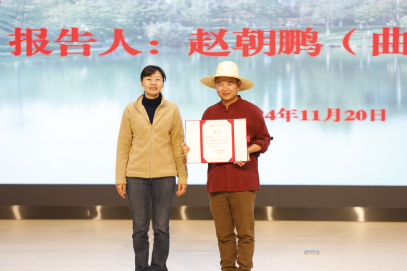 狄光智向“老村长”颁授“校外创新创业导师聘书”。(来源:艺术与设计学院(艺术博物馆)/图:张冉/文:王进松/审核:张德国/初审:张冉/复审:冷瑾/终审:张武先, 柏顺文/责任编辑:张冉)