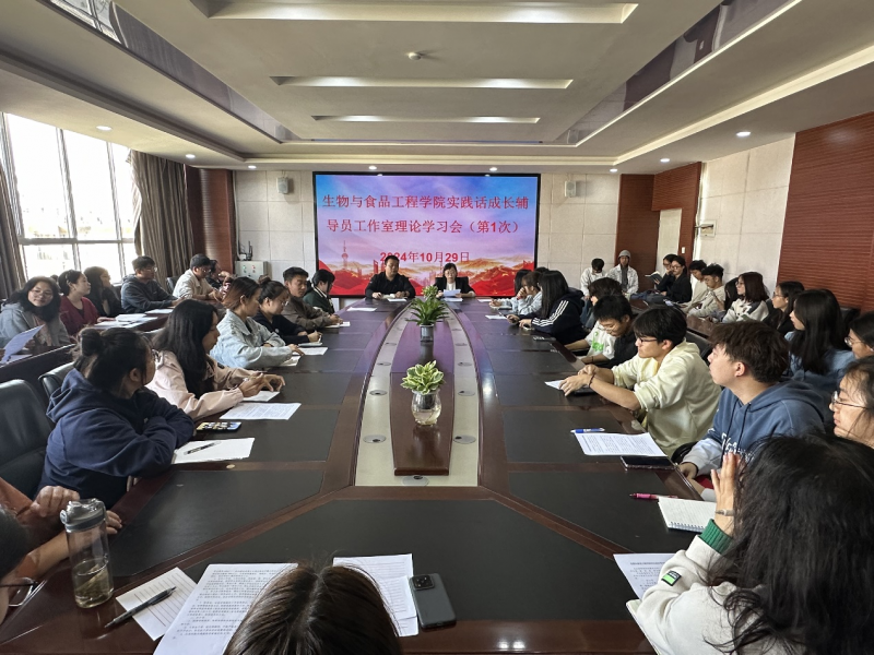 10月29日,生物与食品工程学院实践话成长辅导员工作室召开展政治理论学习会,专题学习《习近平总书记给中国国际大学生创新大赛参赛学生代表的回信》。学院党委副书记、工作室主持人陈敏,学生代表参加会议。会议由学院团委负责人毛祥忠主持。
