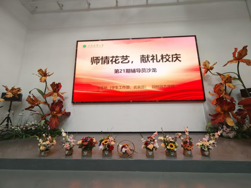为进一步加强学校辅导员队伍建设,推动学校学生工作高质高效发展,10月18日,由学生处(学生工作部、武装部)主办、园林园艺学院承办“师情花艺,献礼校庆”第21期辅导员沙龙活动在校友之家举行,学生处(学生工作部、武装部)处(部)长徐高峰、园林园艺学院党委书记刘刚连参加活动并致辞。沙龙由园林园艺学院辅导员伍林彧杰主持,各学院辅导员代表和学校民族团结进步示范本科班同学参加。