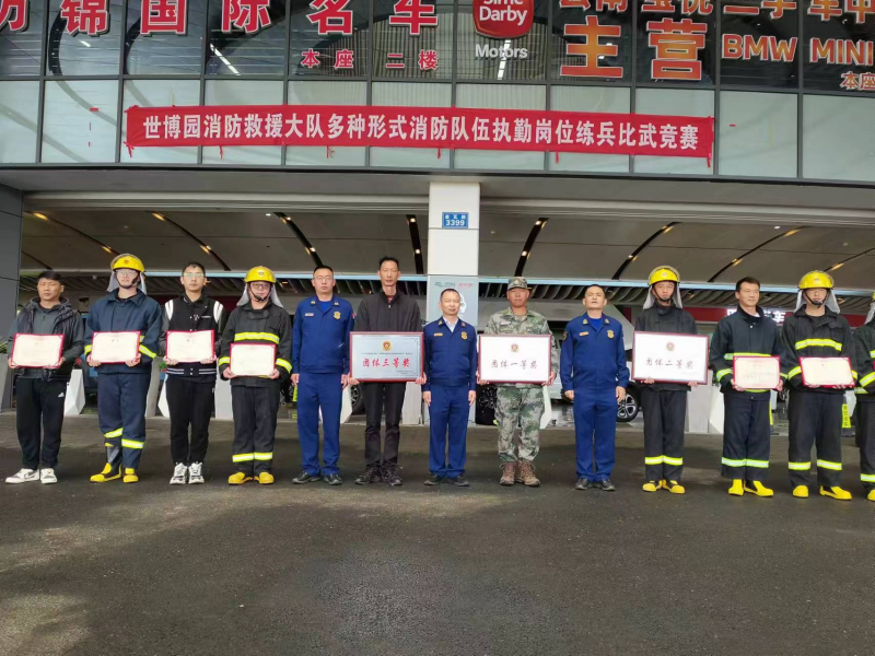 为全面加强消防队伍建设,提高应急救援能力,10月11日,世博园消防救援大队举行2024年度多种形式消防队伍执勤岗位练兵比武竞赛。保卫处陆敬堆老师带领安防中队同学参加竞赛。参赛队员刻苦训练,奋力拼搏,最终从52个参赛队伍中脱颖而出,取得第三名的佳绩。