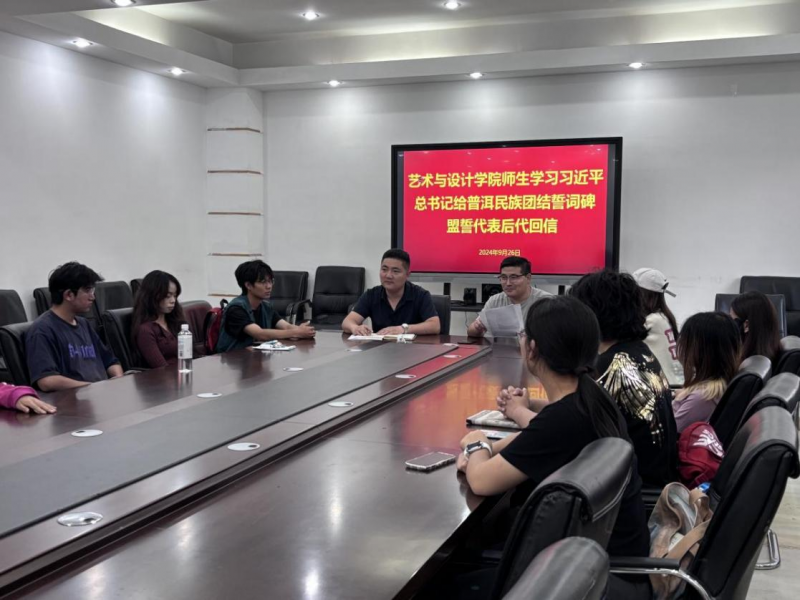 9月26日,艺术与设计学院(艺术博物馆)组织学院师生学习习近平总书记给普洱民族团结誓词碑盟誓代表后代的回信。学院党委书记张德国,普洱籍学生代表、学生骨干代表等参加会议。会议由学院团委书记王进松主持。