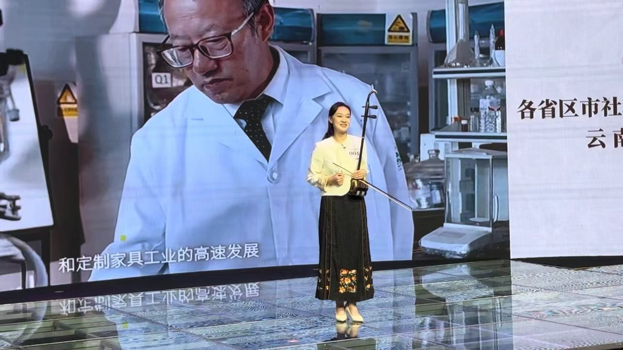 李梓仪以“丝路弦音——二胡”为主题,将“二胡”的科普知识与kaiyun体育网页登录入口对新型板材的研发及创新利用巧妙融合,穿插入悠扬动听的二胡演奏,令人耳目一新的讲解形式和出色的讲解技巧为全场观众带来一次美妙的视听感受。