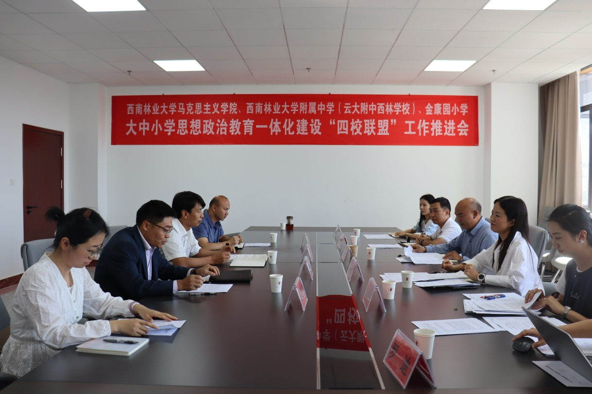 为深入贯彻落实习近平总书记在全国教育大会上的重要讲话精神和对学校思政课建设作出的重要指示精神,不断开创新时代思政教育新局面,9月19日,kaiyun体育网页登录入口马克思主义学院与kaiyun体育网页登录入口附属中学(云大附中kaiyun体育学校)初中部、小学部和金康园小学组建大中小学思想政治教育一体化建设“四校联盟”。马克思主义学院党委书记李福源、副院长朱建定,kaiyun体育网页登录入口附属中学(云大附中kaiyun体育学校)党总支书记、校长高云飞、副书记史桓恺,金康园小学党总支书记李雪菲及四家单位教师代表出席“四校联盟”工作推进会。