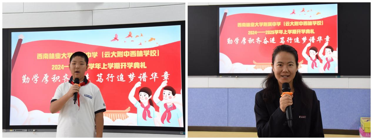 上午,学校举行开学典礼。高云飞在讲话中欢迎新加入附中大家庭的同学们,他表示,在过去的一学年,学校教师注重专业发展,潜心钻研、智慧从教、关爱学生;附中学生努力奋发、脚踏实地、修身自律、勇争上游,全校师生用实际行动诠释着奋争精神,共同营造“让每一位学子都成为独一无二的冠军”的良好氛围,进一步巩固了学校在盘龙区乃至昆明市的领先位置。谭永惠在讲话中希望同学们怀抱感恩之心,踏上刻苦奋争之路,学会思考、学会学习、学会创造,虚心向身边的同学学习,成为德才兼备、身心和谐、文理会通、品性高雅的“附中人”。