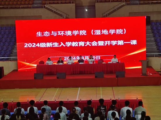 8月30日,生态与环境学院(湿地学院)举行2024级新生教育大会暨开学第一课。学院党政领导班子、2024级新生班主任、辅导员、学生管理工作相关老师及全体新生参加了此次教育大会。