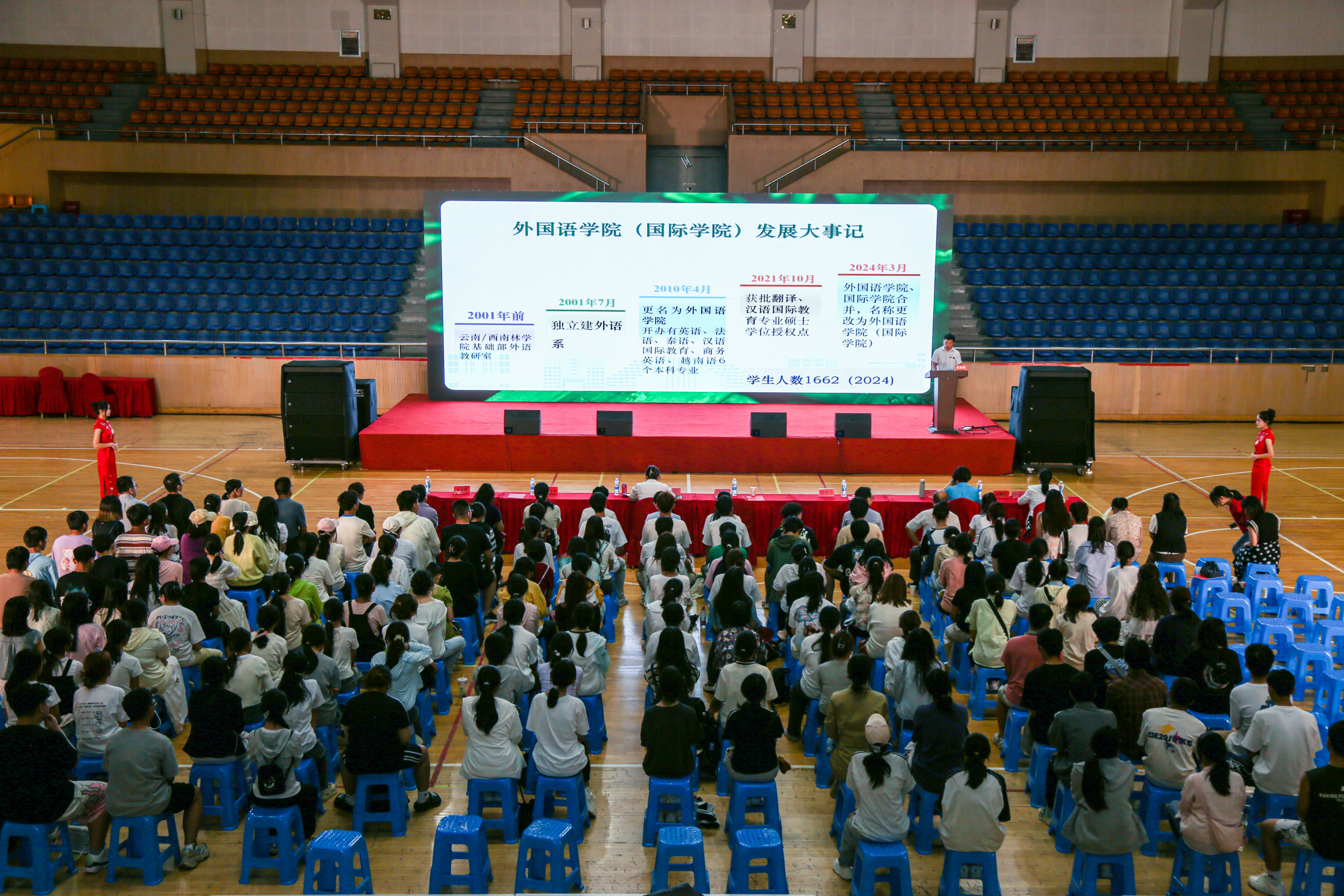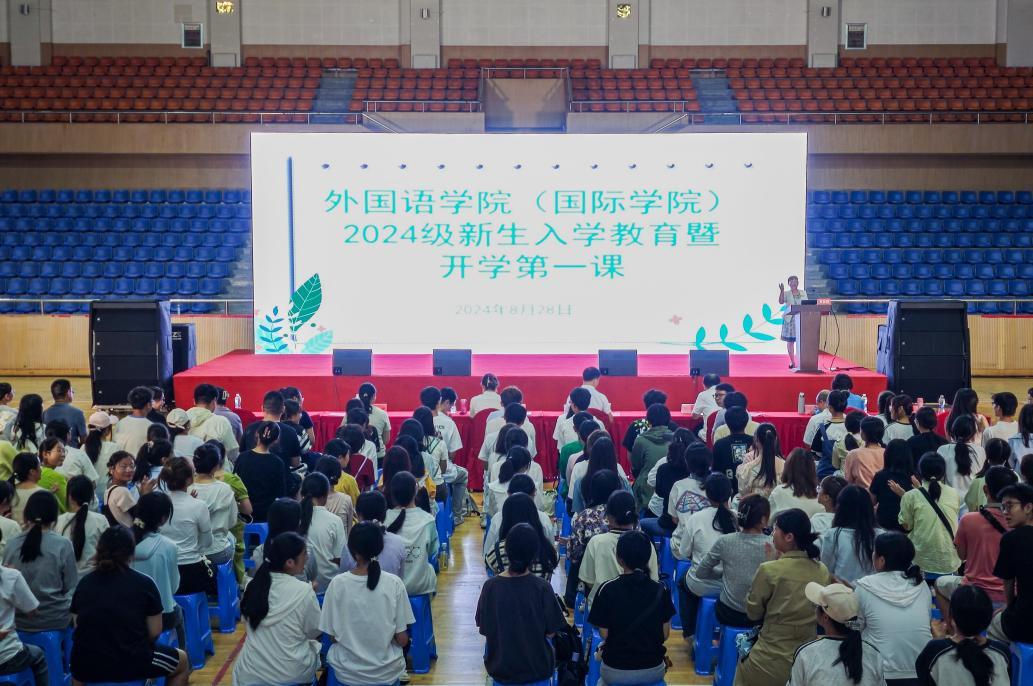 8月28日,外国语学院(国际学院)开展2024级新生入学教育暨开学第一课。学院党政领导班子、各系部中心主任、全体辅导员及2024级班主任参加此次活动。会议由党委书记姜丽红主持并致欢迎辞。