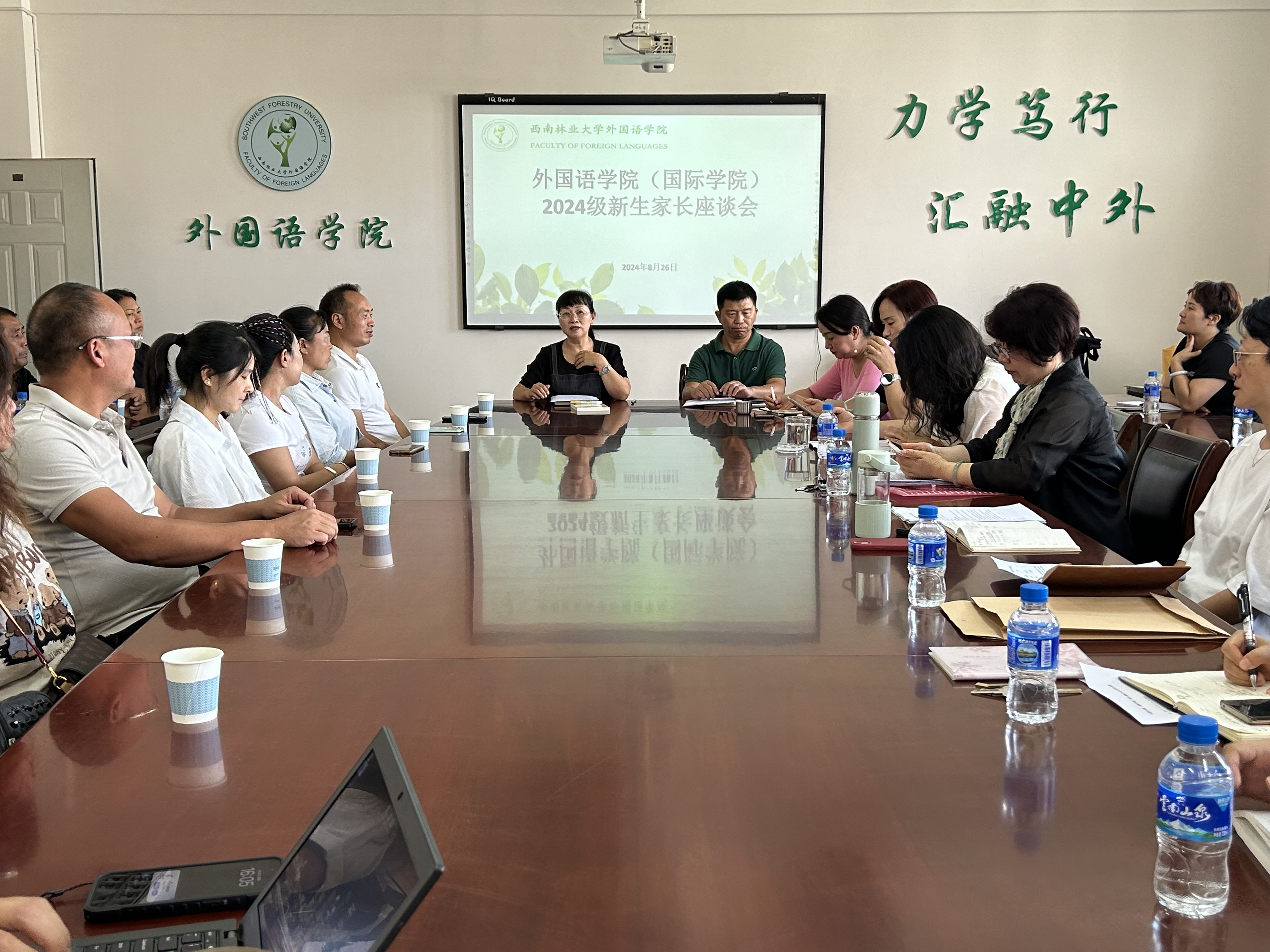 8月26日下午,外国语学院(国际学院)召开2024级新生家长座谈会。学院党政领导班子、教学办主任、各专业负责人、辅导员、全体新生班主任及部分新生家长参会。会议由学院党委书记姜丽红主持。