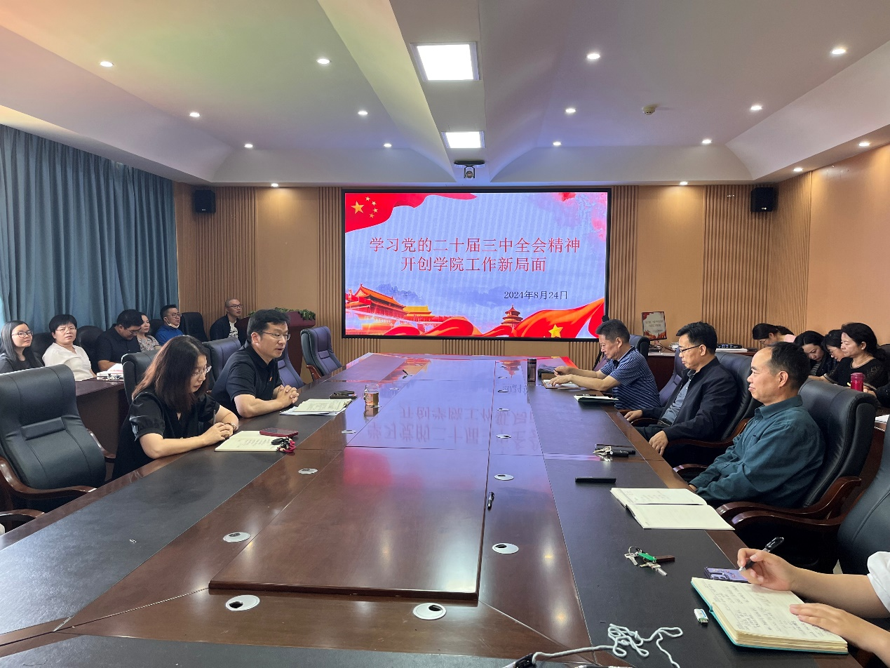 学院党委书记刘建祥带领全院教职工学习“党的二十届三中全会精神”,并对学院迎新工作、人才引进、就业工作、党建工作、安全管理等重点工作进行安排和强调。