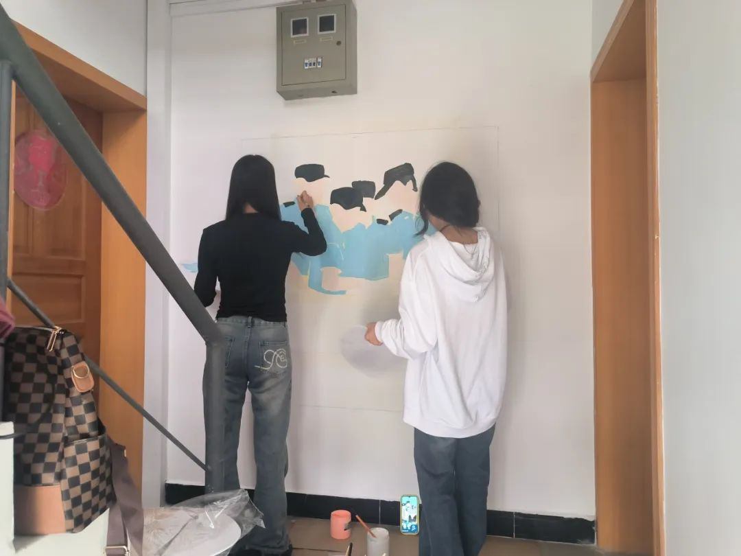 实践团的39名学生利用自身专业特长,结合场地实际,将70多面墙进行彩装,用自己的方式表达出对警民关系的深情厚谊和对社会美好未来的期待。本次墙绘活动以“警民一家亲”为主题,学生们在设计中融入了警察与社区居民和谐相处的场景,展现了警民之间的深厚情谊。每一幅墙绘作品都充满了温情和正能量,不仅美化了民警宿舍的生活环境,还传递了警民团结协作、共建和谐社会的精神。