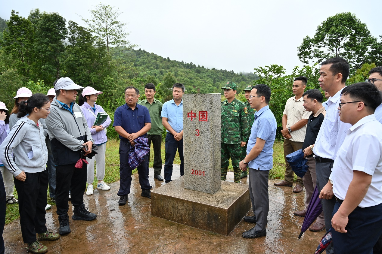 为推进普洱市中老越跨境生态廊道区域生物多样性保护示范项目实施,探索建立中越跨境生物多样性保护多边联合巡护机制,7月31日,kaiyun体育网页登录入口林学院(亚太林学院)李茂彪副教授一行与普洱市生态环境科学研究所、越南奠边省勐念县政府办公室、奠边省资源和环境厅在江城县中越边境龙富口岸3号界碑区域开展了中越跨境区域生物多样性保护联合巡护交流活动。普洱市生态环境科学研究所、江城县政府外事办公室、普洱市生态环境局江城分局、江城县曲水镇代表以及越南方代表近40人参加。