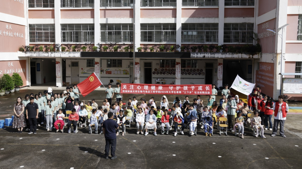 7月19日,生物与食品工程学院“童心守护”青年实践团举行结营仪式。龙陵团县委负责人、青年志愿者和79名小朋友参加结营仪式。