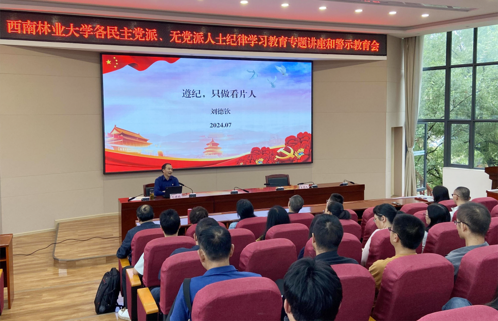 7月4日,统战部举办各民主党派、无党派人士纪律学习教育专题讲座和警示教育会。校纪委副书记、巡察组组长刘德钦教授作专题辅导。全校各民主党派及无党派人士代表参加。