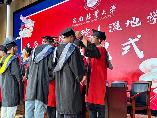 6月2日下午,生态与环境学院(湿地学院)在图书馆大报告厅举行2024届毕业生毕业典礼,学院党政班子、毕业班班主任、教师代表、辅导员、校友代表及学院2024届毕业生等400余人参加活动。仪式由学院党委副书记赵芬主持。