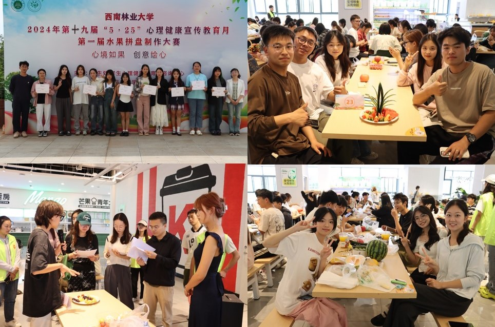 为丰富学生课余生活,深化心理健康教育。5月18日,学校在四食堂举办第一届水果拼盘制作大赛。活动由学生处学生心理健康教育与咨询中心主办,生物与食品工程学院承办。生物与食品工程学院党委副书记陈敏,林学院团委、学生心理健康教育与咨询中心、生物与食品工程学院负责老师,以及全校200余名学生参加活动。