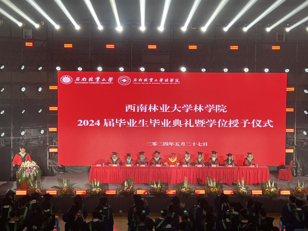 5月27日,林学院在体育馆举行2024届毕业典礼暨学位授予仪式。副校长杨斌出席典礼并致辞,学院党政班子、全体教师以及2024届全体毕业生共计800余人参加。典礼由学院党委副书记李法营主持。