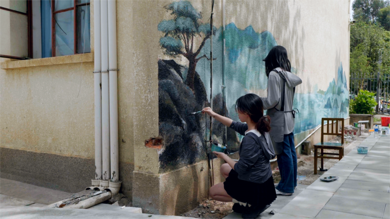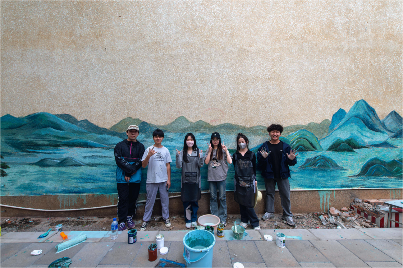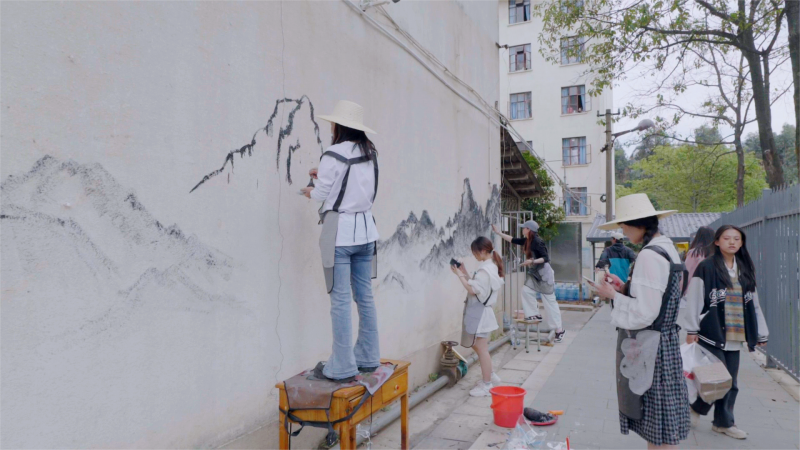 同学们根据打造绿美社区的定位,因地制宜为宿舍楼外墙设计彩绘,用画笔和颜料在社区的墙壁上绘制出了16幅功能性强、色彩斑斓、富有创意的画作,让普普通通的白墙“改头换面”,变成了宣传和弘扬党的思想、理论和精神的“会说话”“高颜值”的文化墙、文明墙。