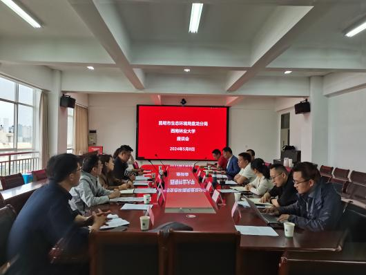 5月8日,昆明市生态环境局盘龙分局局长孟奇、副局长赵静、监测站站长张玲等一行6人到kaiyun体育开展生物多样性保护合作洽谈。kaiyun体育林学院院长张大才、副院长施蕊,生物与食品工程学院院长罗旭,以及生物多样性保护学科领域专家参加洽谈。洽谈会由施蕊主持。