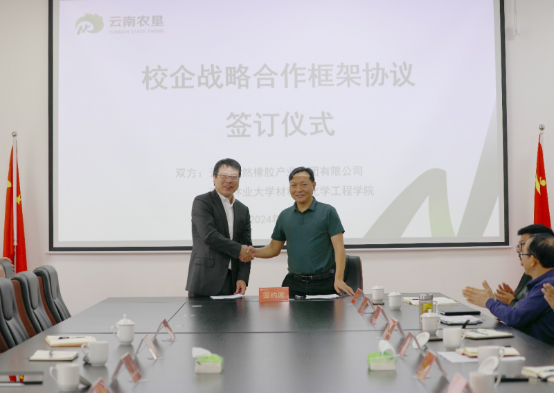 5月8日,材料与化学工程学院到云南农垦集团下属云南天然橡胶产业集团有限公司访企拓岗并签署战略合作协议。学院党委书记孙浩及高分子系教师代表,云胶集团党委书记、董事长肖恒普,副董事长、总经理周力勇,副总经理阮林光出席活动。
