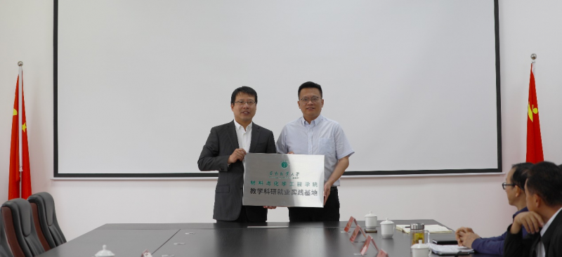 双方在座谈交流后举行签约仪式和“材料与化学工程学院教学科研就业实践基地”授牌仪式。(来源:材料与化学工程学院/文/图:刘灿/审核:孙浩/初审:史桓恺/复审:矣学忠/终审: 柏顺文/责任编辑:矣学忠)