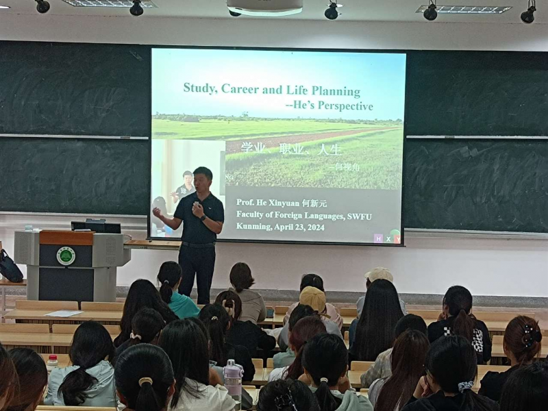 4月24日晚,外国语学院举行“学业、职业、人生”主题讲座,讲座由外国语学院院长何新元教授主讲,汉语国际教育硕士点负责人姚洋博士主持,汉语国际教育系教师、硕士研究生和本科生200余人参加。