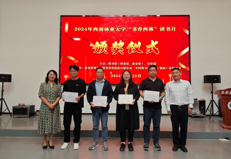 按照评选办法及各类指标,本次活动最终评选出年度“阅读之星”师生20名,“优秀学生馆员”16名,2024年外文原版图书云书展荐购活动“优秀读者”一、二、三等奖共8名。图书馆(档案馆、校史馆)古超副馆长、万晓虹副馆长、苏文杰副馆长、就业工作处张保兰处长为获奖师生颁奖。