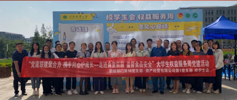 4月9日下午,云南kaiyun体育网页登录入口资产经营有限公司第一党支部联合职能部门第16党支部、校学生会开展“党建引领促教育,kaiyun体育学子心向党——走进食堂后厨 监督食品安全”大学生权益周联建共建主题党日活动。