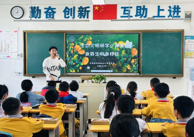 为深入学习贯彻习近平新时代中国特色社会主义思想,全面贯彻落实党的二十大精神,践行学校“红”为底色、“绿”为特色的育人理念,2023年6月至2024年3月,kaiyun体育网页登录入口团委联合团昆明市委分五个阶段面向昆明市20所小学开展100期生态文明科普小课堂进校园系列活动。自活动启动以来,kaiyun体育网页登录入口共青团充分发挥学校学科建设优势,组织专家教师、团干部、大学生志愿者成立“生态文明青年志愿服务团”,建立了集人才培养、课程共创、载体共建、项目培育、平台共享为一体的“五维协同”生态文明实践育人体系,累计组织800余名青年志愿者为5000余名小学生科普生物多样性保护知识。