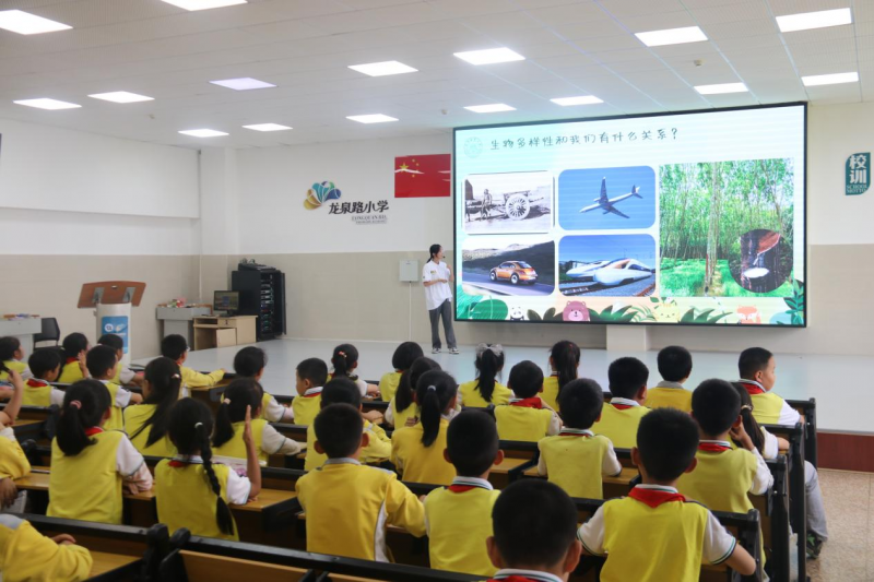 课堂上,老师以小朋友眼中的生物多样性为切入点,通过PPT讲解演示、问题引导、小游戏、互动问答等方式让小朋友们了解我们身边的生物多样性,做到思学结合,在激发小朋友们对生物多样性知识好奇心和求知欲的同时,积极引导他们认识生物多样性,树立保护生物多样性的意识。同学们不时与老师提问交流,一些话题引发了同学们对于生物多样性保护的思考与讨论,为引导小朋友从小树立保护生物、保护自然的意识起到了积极作用。