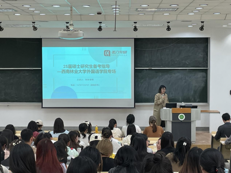 为帮助2025届学生明晰前进方向,3月15日,外国语学院组织召开2025届毕业生考研动员会,特别邀请弧力教育刘柏秋老师到场开讲并进行备考指导,200余名学生到场聆听讲座。