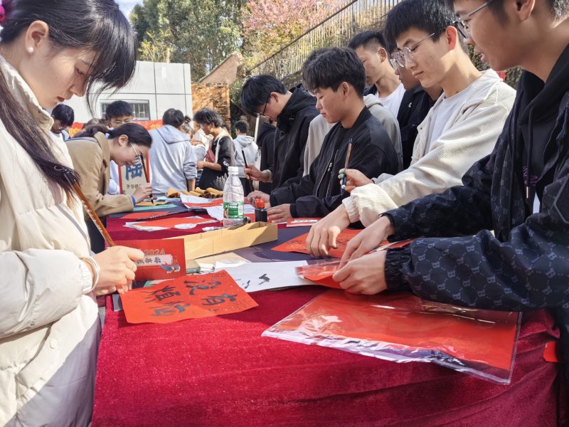 支部党员认真学习《国家主席习近平发表二〇二四年新年贺词》后,游园活动正式开始。活动包含猜灯谜、写福字、剪窗花、投壶、放飞纸飞机、贴鼻子、手脚并用等项目,让远在他乡的同学们体会了家的温暖,感受到了中华传统文化的魅力,互动游戏环节拉近了同学间的距离,增进了团队凝聚力。