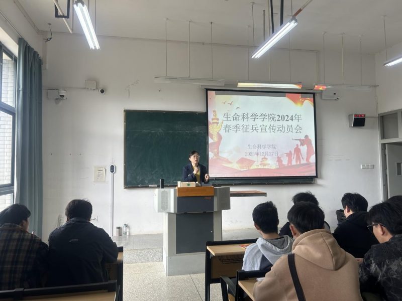 为鼓励广大学生积极响应国家号召,投身国防事业,12月27日,生命科学学院在第四教学楼102室召开2024年大学生征兵入伍宣传动员会。学院党委副书记陈敏、学工办主任谢瞰、辅导员陈哲及全体毕业生参加了会议。