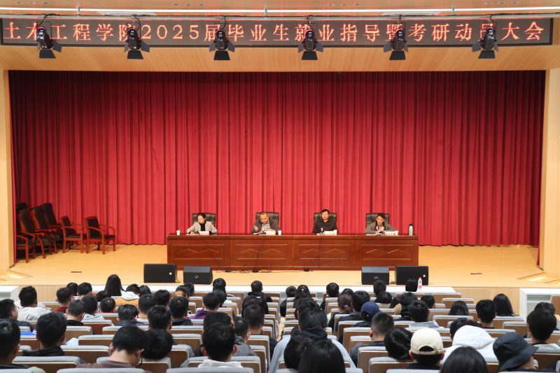 12月19日,土木工程学院在图书馆大报告厅召开2025届毕业生就业指导暨考研动员大会。学院党委书记谭泽飞、院长孙微微、就业工作处工作人员、学院就业联络员,2023级研究生李维君,全体2025届毕业生参会。