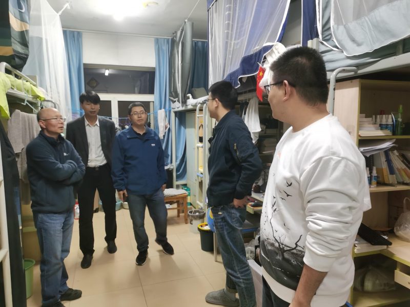 为深入了解研究生在宿舍生活学习的实际情况,12月19日晚,在学院党委书记李福源带领下,党委副书记王海亭、副院长郭祖全、辅导员以及班主任一行走访学生宿舍。