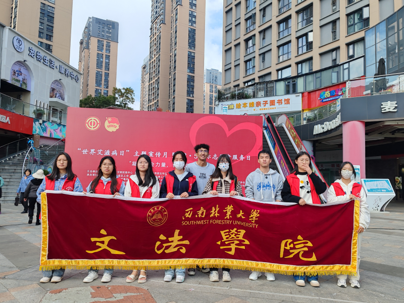 为了提高全社会对艾滋病的关注度,增强人们对艾滋病患者的关爱和支持。12月1日,文法学院青年志愿者协会开展以“凝聚社会力量,合力共抗艾滋”为主题的公益活动。