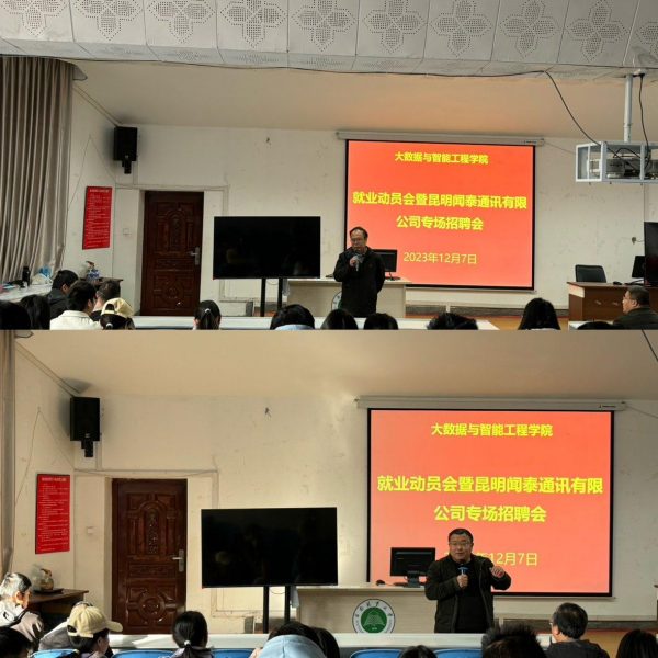 为教育引导2024届毕业生树立正确的就业观,促进更充分就业,12月7日,大数据与智能工程学院召开就业动员会暨昆明闻泰通讯有限公司专场招聘会。学院党委书记林开文、副书记李会朋及2024届部分未就业毕业生参加会议。