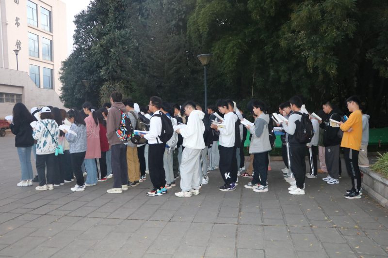 数理学院开展“晨读一语,周明一理”晨读活动,号召同学们在每周星期二至星期五上午7:00至7:30,在第一图书馆前以班级为单位进行晨读。活动现场书声朗朗,展现着数理学子学习风采,营造了勤于学习、主动学习的优良学风。